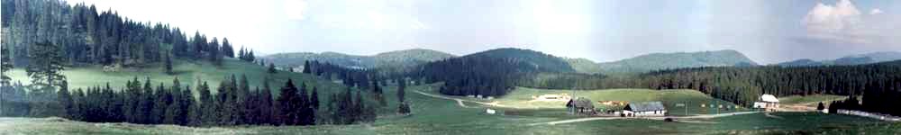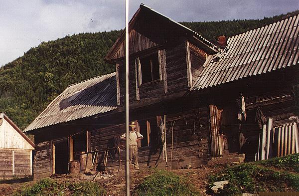 Anhänger und machen uns auf den Weg. Vom Anfang an ist der Weg unbefestigt und geschottert. Teilweise muß man lange Schlammpassagen durchqueren. Im lang ansteigenden Tal befinden sich die Streusiedlungen Gersa 1 und Gersa 2. Bis zum vermuteten Kern von Gersa 2 sind es 15km, welche wir in 3h-stündiger langsamer Fahrt bewältigen. Die Landschaft ist allerdings eine reichliche Entschädigung für diesen mühevollen Weg (umliegende Berge bis 1660m) Gegen 19:00 beziehen wir Quartier auf einer schönen Almenwiese. Der VW-Bus steht 300m oberhalb direkt an der Höhle auf einem steilen Waldweg. In der Nähe stehen einige Almhütten oder Scheunen. Das anwesende Pferdegespann rückte beladen mit Baumstämmen in Richtung Tal ab. Es wird sehr still. Am Abend gibt es dann endlich die Thüringer Bratwürste und Hähnchenflügel. Ein streuender "Halbwolf" wird von uns mit den Knochenresten verwöhnt und belohnt uns mit seiner steigenden Zutraulichkeit. Er bleibt über Nacht.